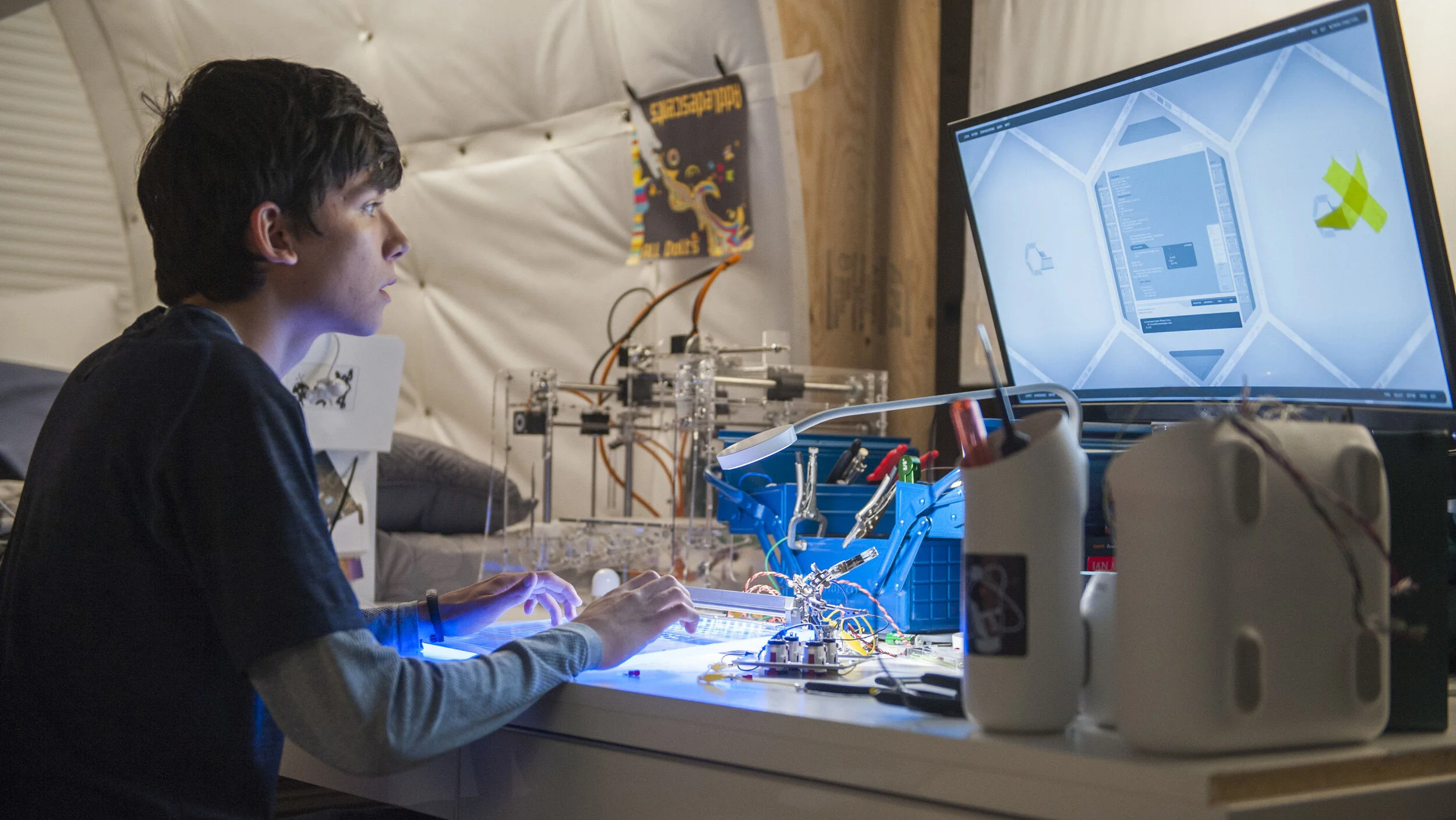 As an FUI designer, you spend most of your time in a light-on-dark palette, so I was psyched when the team at The Space Between Us liked my dark-on-light concept for the Mars station UI.